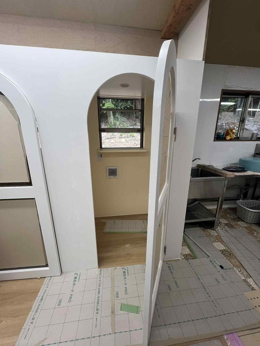 現在改装中の医療用個室。扉には透明窓がはめられ、中の様子が見えるように