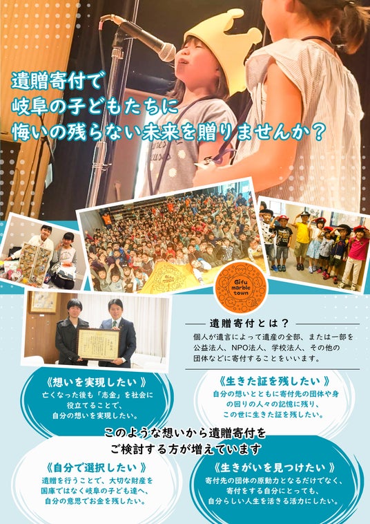 遺贈を行うことで、大切な財産を国庫ではなく岐阜の子ども達へ、自分の意思でお金を残したい。