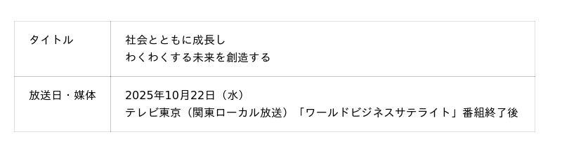 株式会社クレスコ(本社:東京都港区、代表取締役 社長執行役員:冨永 宏、以下当社)は、2025年10月22日(水)放送のテレビ東京「ワールドビジネスサテライト」終了後に、特別CMを放映いたします。