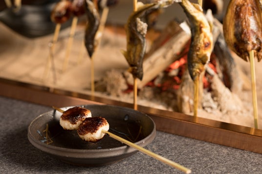 囲炉裏では、つぶした新米に味噌だれをまとわせ、炭火で香ばしく焼き上げる「五平餅づくり体験」も開催。