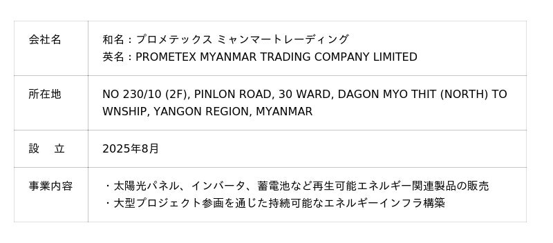 【PRESS RELEASE】「PROMETEX MYANMAR TRADING COMPANY」を設立