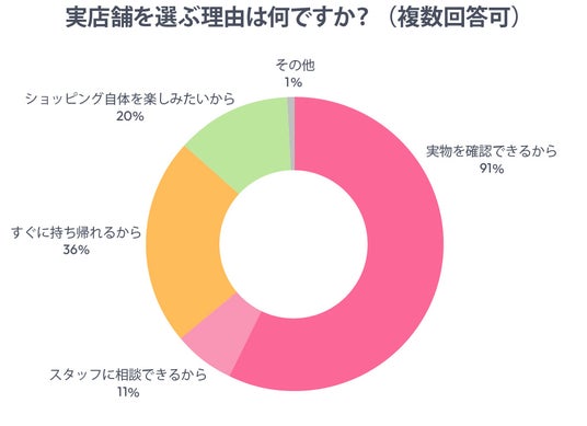 その結果、「実物を確認できるから」(91%)が圧倒的多数。
