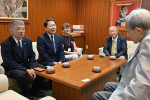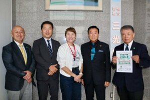 一般高圧ガスや工業薬品の販売などを手がける「三光堂」(岐阜市本荘中ノ町)には役員4人が訪問。GKI会長の藤井豊文さん(米ワシントンDC県人会長、岐阜市出身)、前会長の長屋充良さん(ブラジル県人会長、関市板取出身)、副会長兼事務局長の大野美夏さん(ブラジル県人会、揖斐川町出身)、副会長の池村周二さん(美濃市在住)が、大野正和会長に第2回大会の概要を説明しました。