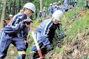 裏木曽の森未来につなぐ 付知中生、ヒノキの苗木植樹 中津川市 御神木伐採の地、願い込める