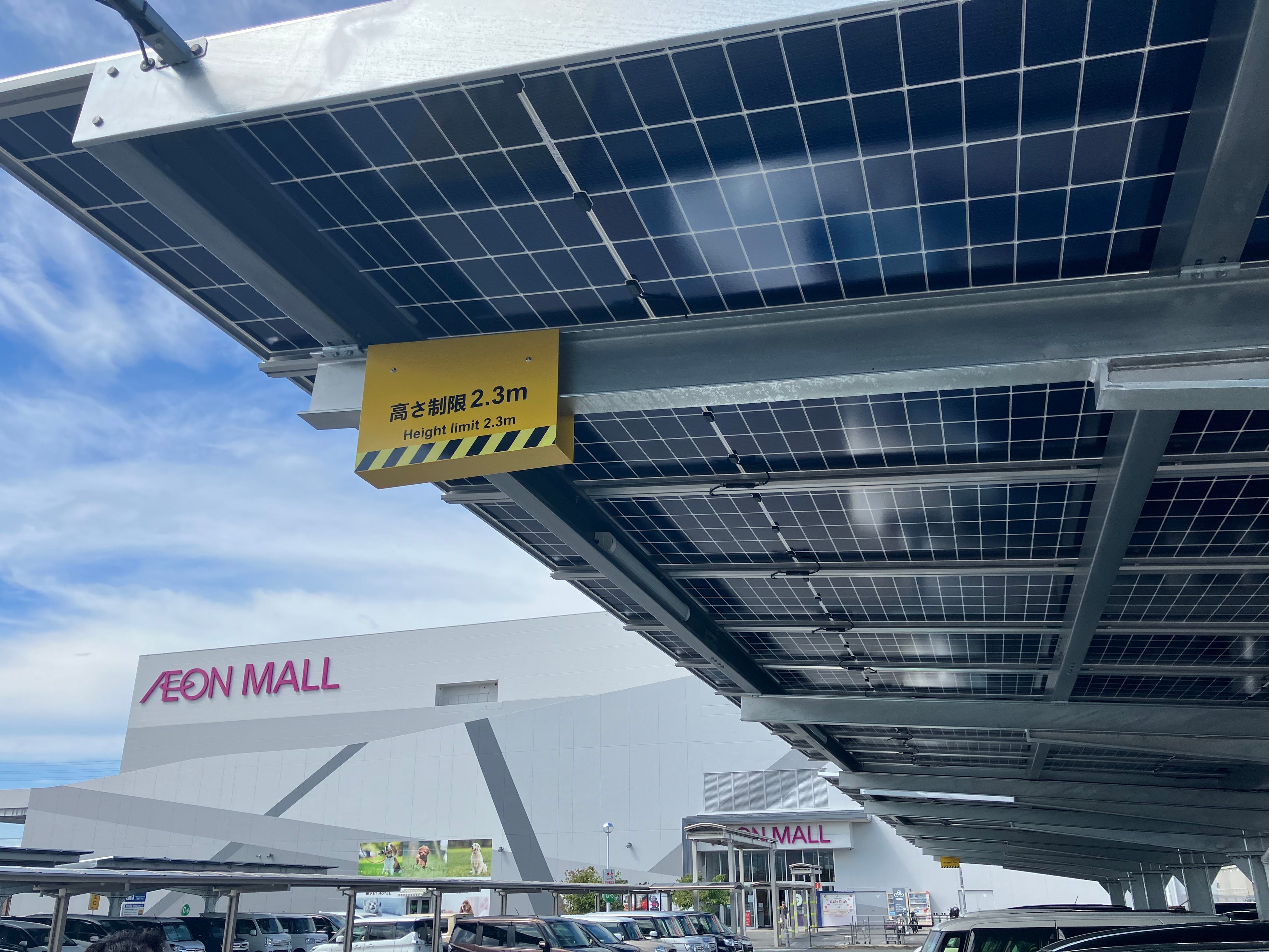 イオンモール大和郡山にて、日本最大規模となるソーラーカーポートが稼働