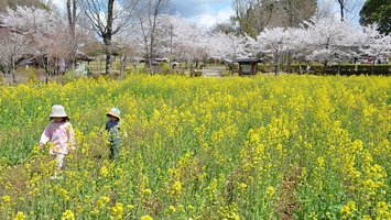 菜の花と桜、春のコラボレーション ぎふ清流里山公園