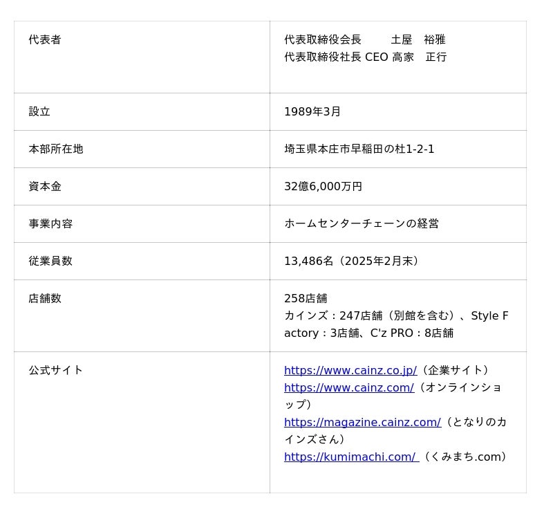 株式会社カインズは、29都道府県下に258店舗を展開するホームセンターチェーンです。