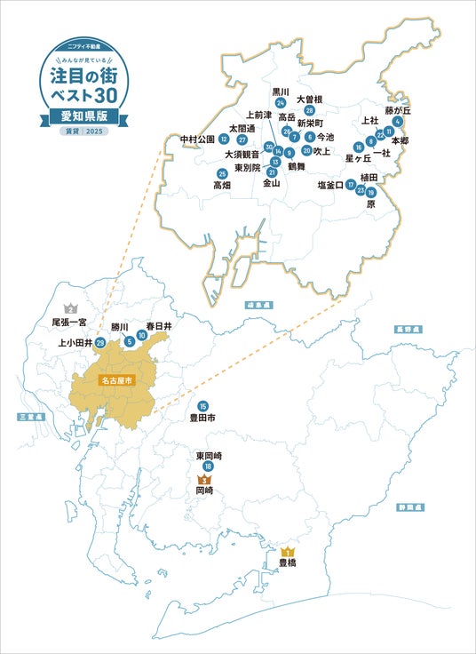 注目の街ランキングベスト30 愛知県版 2025 21~30位