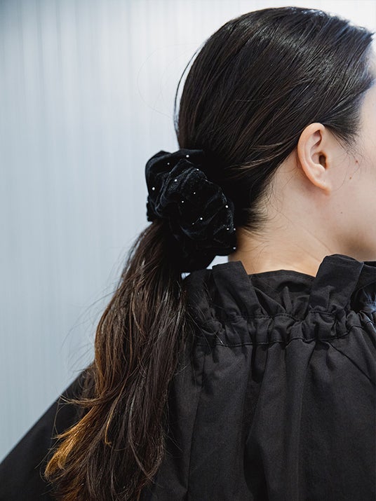 上記、レディース限定アイテムをご購入で、オリジナル限定シュシュをプレゼント。ラメストーンの入ったベロア生地のシュシュは、ヘアアクセとしてはもちろん、手首につけてもコーデのアクセントにもなる万能デザインです。