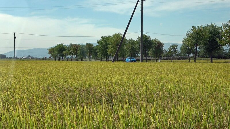 インターの南側には、水田が広がります。撮影時には稲穂が黄金色に実っていました。
