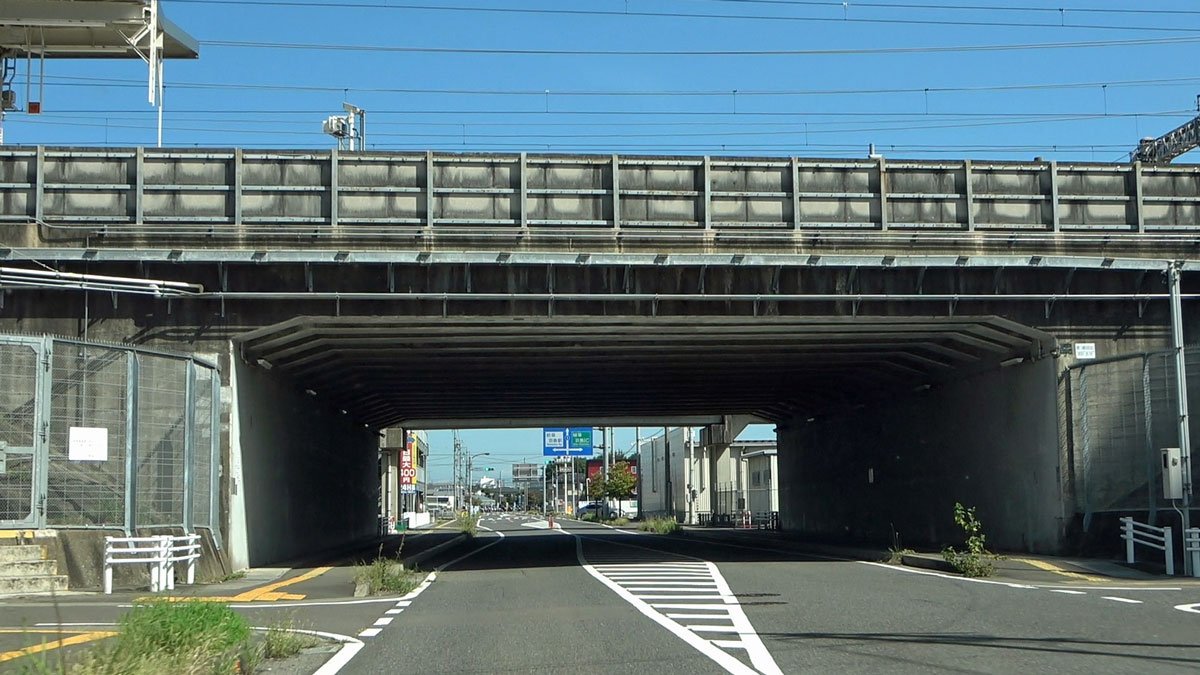 途中で、名神高速と東海道新幹線、名鉄羽島線の高架をくぐります。今回のLRT構想では、架線レス車両が想定されています。大型の自動車が通れる高さがあれば、支障は少ないと考えられます。