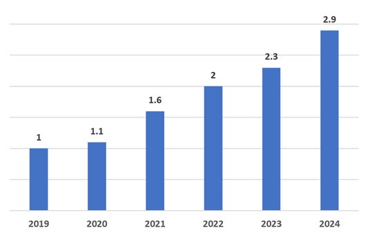 2024年度のフレグランス売上は2019年度比、約2.9倍と高伸長