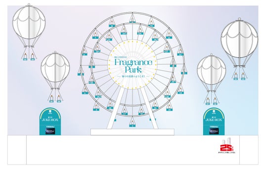 百貨店の1階には、イベントで販売するフレグランスボトル(40点)を観覧車に見立てた装飾が登場。ステージの両脇にはソニーグループ株式会社が開発した「におい提示装置 NOS-DX1000」を設置、専用アプリの操作で展示のフレグランス40種類の香りをお楽しみいただけます。