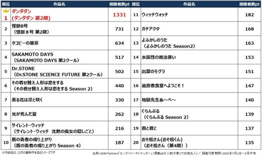 【2025年 夏アニメ 配信コンテンツ視聴者数ランキング】