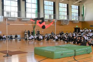 9月に行われた陸上世界選手権東京大会の男子走り高跳びで日本勢最高の8位に入る活躍を見せた、赤松諒一選手(30)=岐阜市出身=を招いた講演会が23日、美濃市千畝町の美濃中学校で行われ、赤松選手がこれまでの軌跡を振り返りながら、夢中になれることを見つける大切さを熱弁した。