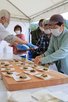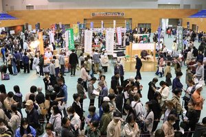 中津川市の特産品を安価に入手できる観光物産博「中山道中津川ふるさとじまん祭・菓子まつり」が24日、同市茄子川の東美濃ふれあいセンターで開幕した。和菓子のブースに100人超の行列ができるなど、初日から熱気があふれている。26日まで。
