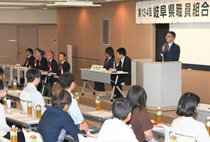 岐阜県職員組合の定期大会、現職知事が19年ぶりに出席 政治・行政 社会 2025年10月24日 18:33 県職員組合の定期大会であいさつする内記淳司中央執行委員長(右奥)=岐阜市薮田南、OKBふれあい会館 県職員組合は24日、第134回定期大会を岐阜市薮田南のOKBふれあい会館で開き、2026年度の運動方針などを決めた。来賓には現職知事として19年ぶりに江崎禎英知事が出席した。... 全文:380文字 この記事をお読みいただくには「デジタルプラン」または「宅配+デジタルプラン」の会員登録が必要です。無料会員の方はログインしてマイページからコース変更してください。デジタルプランまたは宅配+デジタルプランをご登録中の方はログインしてください。 岐阜新聞デジタル会員に登録すると 無料会員向け記事が読める ニュースレターで最新情報が受け取れる デジタルプラン、宅配+デジタルプランなら Webオリジナルコンテンツが読める 紙面ビューアが読める チケットの先行発売に参加できる お得なクーポンが使える 新規登録ページ ログインページ トップ 岐阜のニュース 政治・行政 岐阜県職員組合の定期大会、現職知事が19年ぶりに出席 関連記事 医師・作家の鎌田實さん「朝食は認知症予防に」 ねんりんピック岐阜で江崎知事と対談 岐阜のLRT構想でも浮上、架線レス車両に乗ってみた【みのひだ乗り物探訪 第98回】 NHK本部に岐阜県・江崎知事が直談判へ 公用車での受信料問題 契約見直し求める 世界遺産登録30年、合掌造り集落「結」を守る 岐阜・白川郷 おすすめ記事 3メートル超の巨大絵馬登場、運気上がる白馬描く 岐阜・南宮大社 「福女選び」女城主の里で試される運と健脚 岐阜・恵那市で1月8日、参加募る 金華山で下山中転倒、足首骨折 岐阜市 世界遺産登録30年、合掌造り集落「結」を守る 岐阜・白川郷