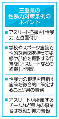 アスリート盗撮「性暴力」 三重県、罰則なしの条例成立 事業者に根絶の努力義務