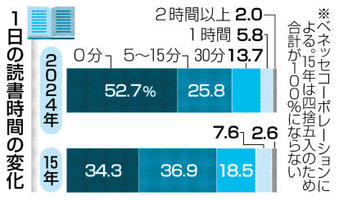 1日の読書0分 小中高生半数超 24年調査 スマホ時間と“反比例”