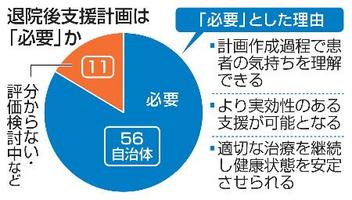 共同通信は47都道府県と20政令市にアンケートを実施。その結果、56自治体が計画作成を「必要」と回答し、「計画作成過程で患者の気持ちを理解できる」(福岡県)、「適切な治療を継続し健康状態を安定させられる」(山形県)などの理由が示された。