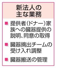 新法人は藤田医大を中心に、移植推進団体などで構成。中部7県(富山、石川、福井、岐阜、静岡、愛知、三重)の病院で臓器提供を希望した患者がいた場合、職員を派遣し、ドナー家族への説明や同意取得をする。また、臓器摘出チームの受け入れ調整や臓器搬送の管理など、ドナー関連の業務を担う。