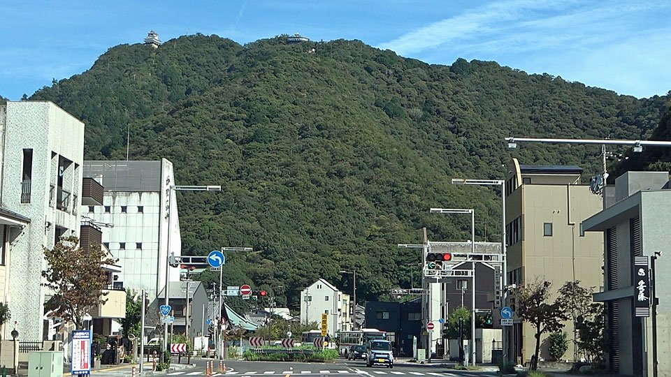 岐阜市本町では、正面に金華山と岐阜城が見えてきました。材木町を通り、岐阜公園の横に至ります。