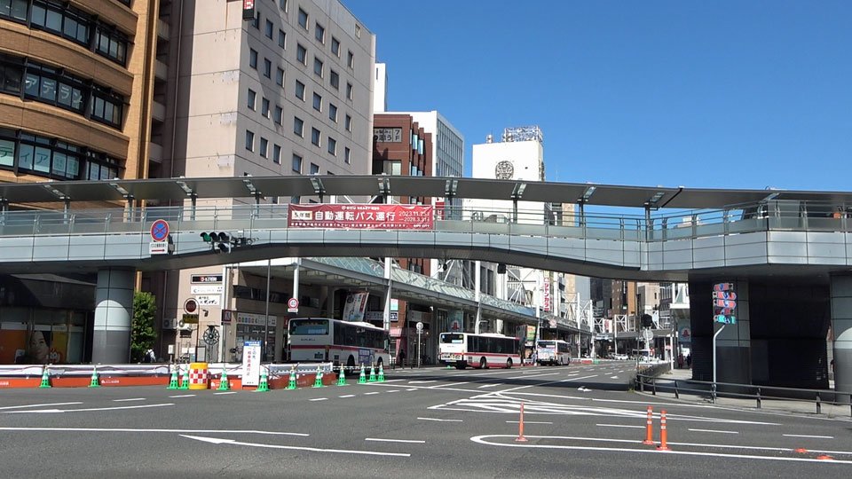 JR岐阜駅前から名鉄岐阜駅前へ、と行きたいのですが、撮影日は岐阜市の長良橋通りトランジットモール社会実験のため、名鉄岐阜駅前を一般車両で通ることはできませんでした。
