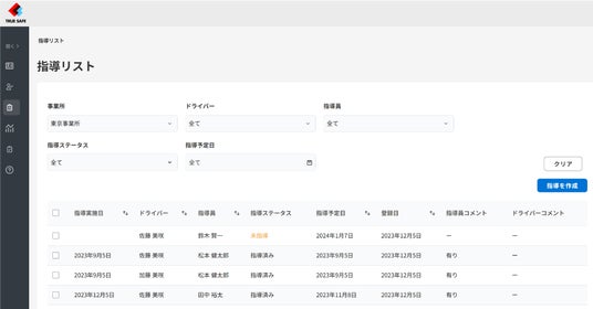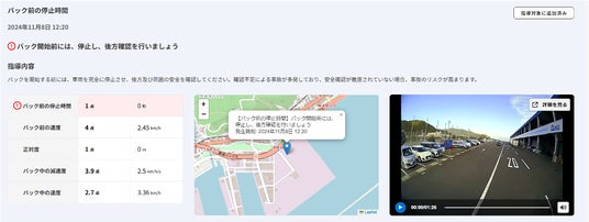 - 運転シーンごとの分析結果をスコアで評価し、指導対象となるドライバーを選定することが容易になり、指導履歴も管理
