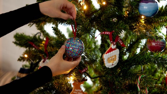 サンタクロースやコイン型のホイルチョコレート入り。クリスマスツリーに飾ってお楽しみいただ