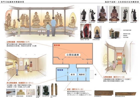 改修後は常時拝観可能な公開活用型の収蔵庫とし、パネルなどの展示設備を一新。