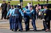 事件への社会的な関心も高いだけに大阪拘置所から移送中の警護にも注力。地裁付近の道路では奈良県警警察官やパトカーが警戒に当たった。