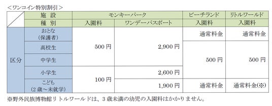 1.内容対象3施設において、入園料が100円または500円のワンコインとなる特別割引を実施します。