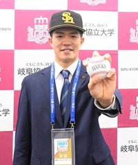 岐阜協立大・相良投手「タイトル」宣言 ソフトバンクから指名あいさつ