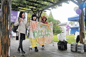 がん患者支援一歩ずつ 大垣市 横断幕掲げ公園周回