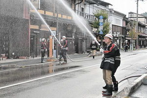 伝建地区・高山市上三之町を守れ 住民が防火訓練 放水手順を確認