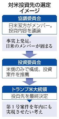 日米両政府が9月に公表した対米投資の覚書によると、投資先は米側のみでつくる投資委員会が案件を推薦し、最終的にはトランプ米大統領が決める。協議委は日米双方のメンバーで構成し、投資委の推薦に先立ち内容を議論する役割を果たすとされる。日本側の意向を適切に反映させられるかどうかが注目される。