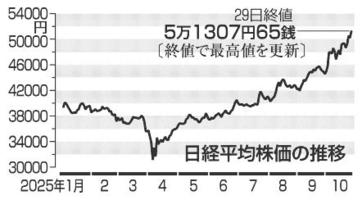 東証初の5万1000円台 終値 半導体株がけん引