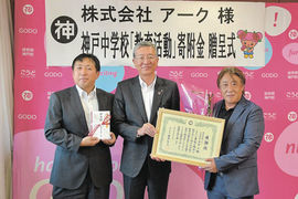 ファイト! 旧井さんも健闘を誓う 神戸町役場