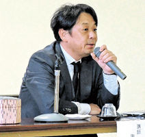 新たな志野表現創作の思い熱く 安藤工さん(美濃陶芸協会長)レクチャー 多治見市のミュージアムで特別展