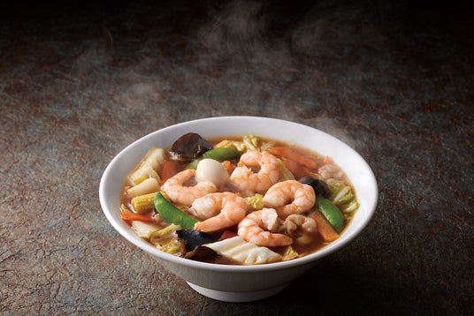 醤油とオイスターソースをブレンドした旨みとコクのあるスープに、海老、豚肉、きくらげ、うずら玉子など8種の具材が入った餡をかけた、冬にぴったりの商品です。味・彩り・食感を楽しんでいただける、『丸源ラーメン』自慢のご馳走商品です。