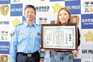 川転落、水没寸前の車から80代救助に貢献 海津署、杉山さんに感謝状