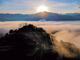 「天空の城 あしたは絶景でしょう」 苗木城 AIで雲海予報
