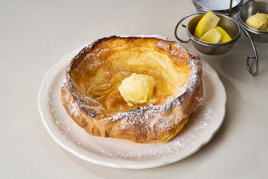 最後にたっぷりの粉糖をかけてお召し上がりいただくのが、ダッチベイビーの黄金比のトッピングです。