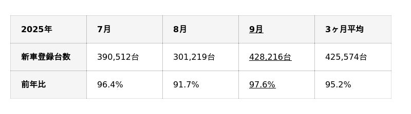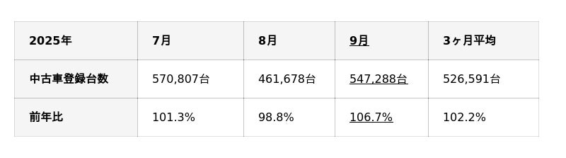 【中古車市場統計レポート(2025年09月)】より抜粋してご案内いたします。