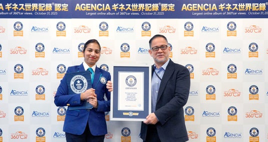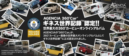 自動車業界のデジタルトランスフォーメーション(DX)をAIと360°撮影技術で推進する株式会社AGENCIA(本社:愛知県名古屋市東区、代表取締役CEO:ジャン・ピエール)は、自社が開発・提供するSaaSプラットフォーム「360°Car(R)」が、「世界最大のオンライン360°車両ビューアルバム(Largest online album of 360° car views)」としてギネス世界記録(TM)(GUINNESS WORLD RECORDS(TM))に正式認定されたことを発表した。