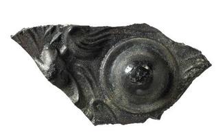 鏡の破片は、2019年に墳頂部の埋葬施設周辺で出土。長さ約3センチで、仙人とみられる模様の一部などが残る。デジタルマイクロスコープの観察で、研磨時のすり跡や、鋳造時に生じる直径0・1ミリほどのくぼみに赤い物質を確認。蛍光エックス線分析でベンガラと判明した。