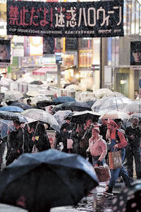渋谷雨で仮装まばら ハロウィーン、署員ら警戒