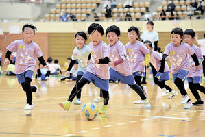 園児、果敢にシュート 高山で保育園サッカー大会