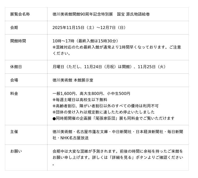 900年の時を超え、雅なる平安王朝文化の扉を開く奇跡の国宝「源氏物語絵巻」。徳川美術館(名古屋市)では開館90周年を記念し、国宝「源氏物語絵巻」を10年ぶりに全点一挙公開します。平安時代に描かれた現存最古の物語絵巻のすべてが、一堂に会する特別な展覧会です。