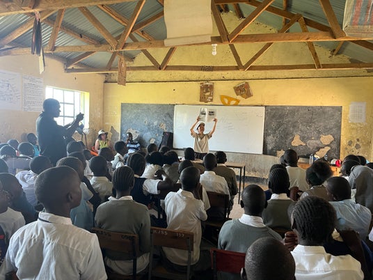 ケニアキスムの学校での平和授業に活用される